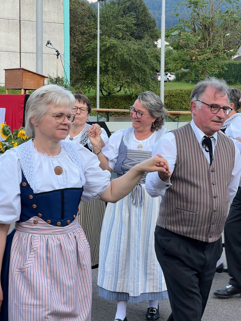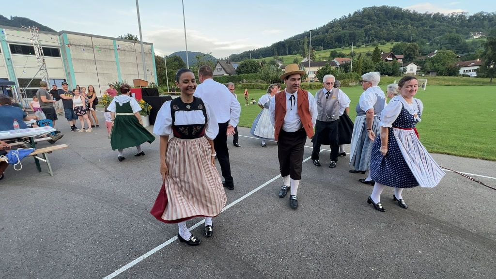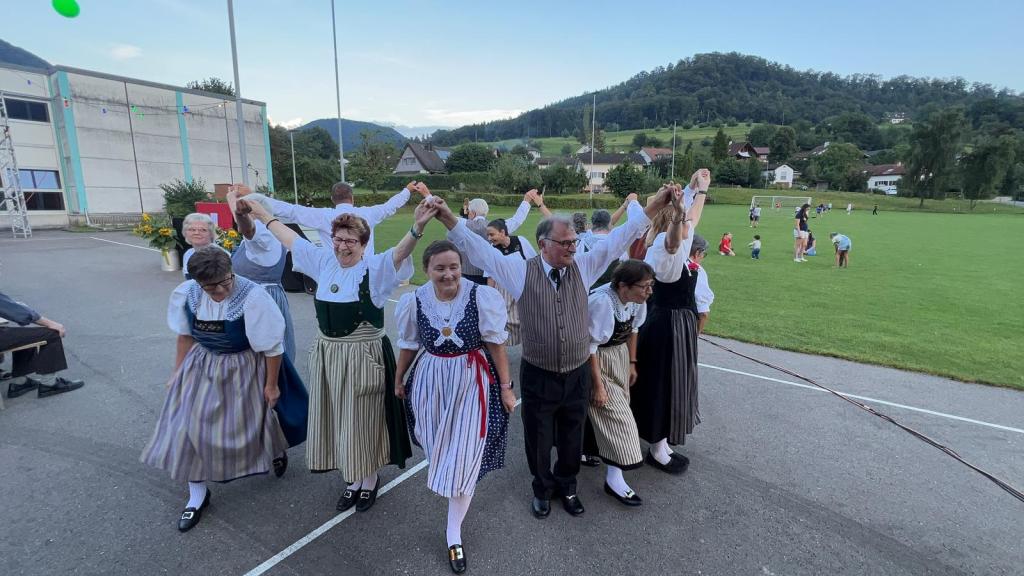 In den sanften Hügeln zwischen Erlinsbach und Küttigen war die Trachtengruppe bekannt für ihre fröhlichen Tänze und die leuchtenden Farben ihrer Trachten. Das ganze Jahr über probten sie mit Hingabe, doch der Dezember hatte immer einen besonderen Zauber. Es war die Zeit, in der sich die Gruppe auf ihren Weihnachtsauftritt vorbereitete, und in diesem Jahr sollte es etwas ganz Besonderes werden: ein Tanz an der Krippe des Weihnachtsmarkts.