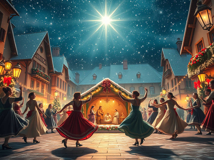 Gesagt, getan. Im Schnee unter dem Sternenhimmel probten sie noch einmal ihren Tanz. Plötzlich bemerkten sie das Licht, von dem die Kinder gesprochen hatten. Es war wie ein schimmernder Stern, der über ihnen stand und den ganzen Platz in ein sanftes Leuchten hüllte. Alle hielten den Atem an. Maria lächelte. „Das ist ein Zeichen. Unser Tanz wird gelingen.“